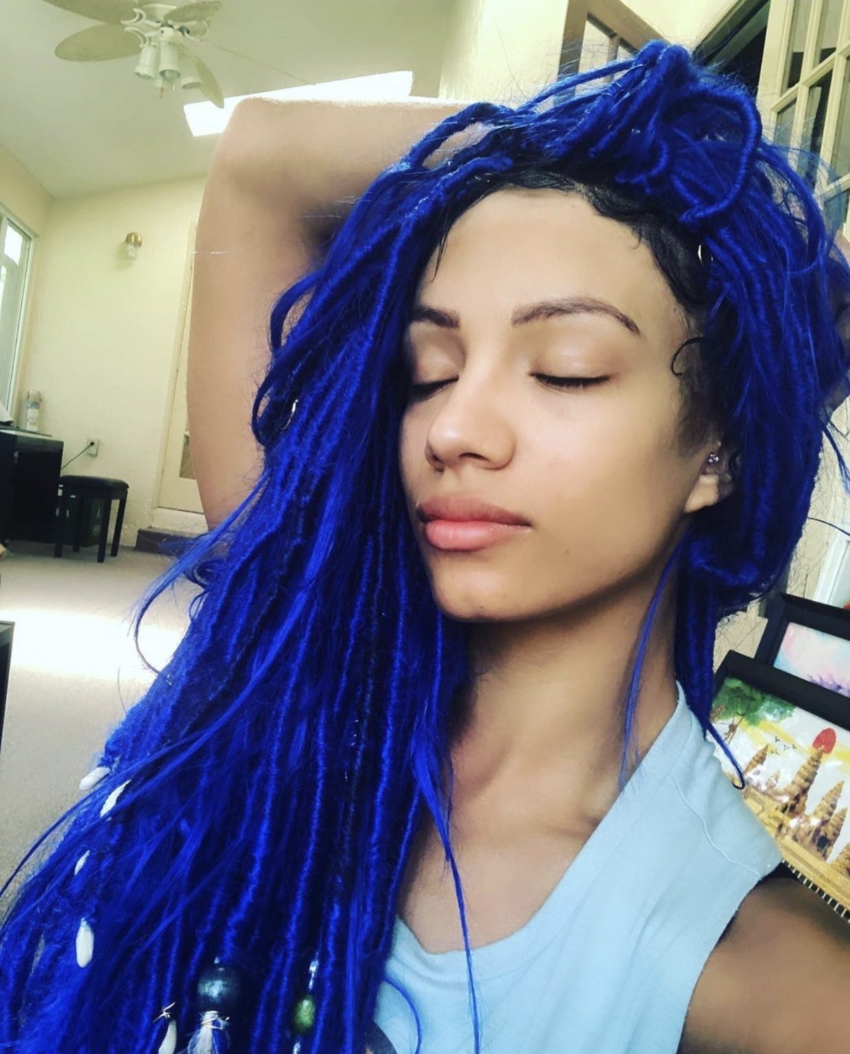 The blue hair definitely works for Sasha and is a. Sashas hair has went from multi-colored to the new and.